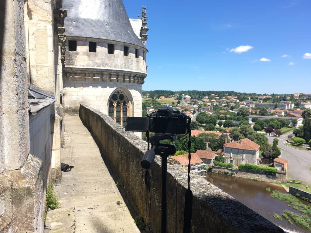 Ci-contre, une prise de vue pour réaliser un photomontage au Château de La Rochefoucauld (16)