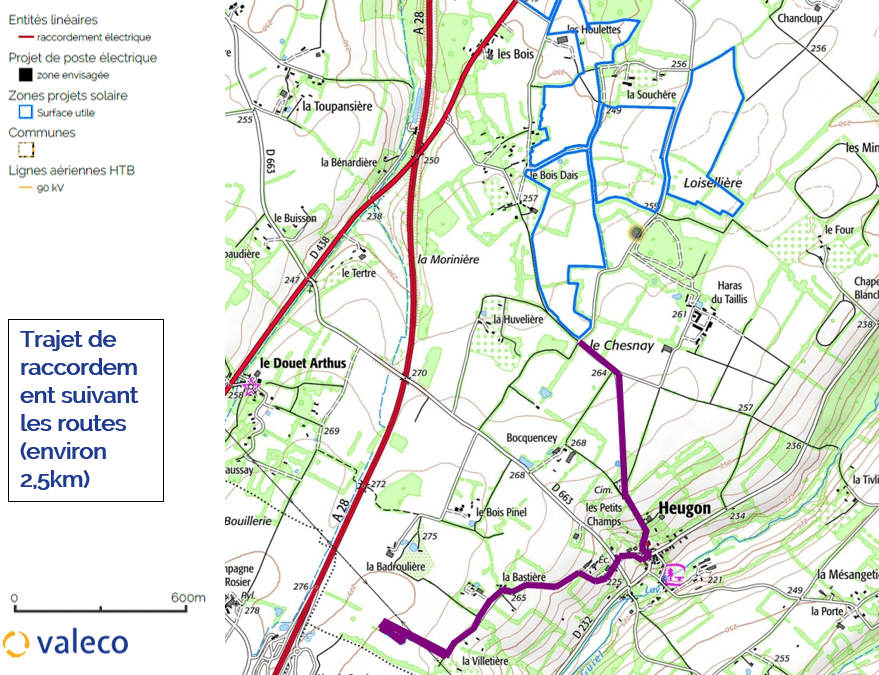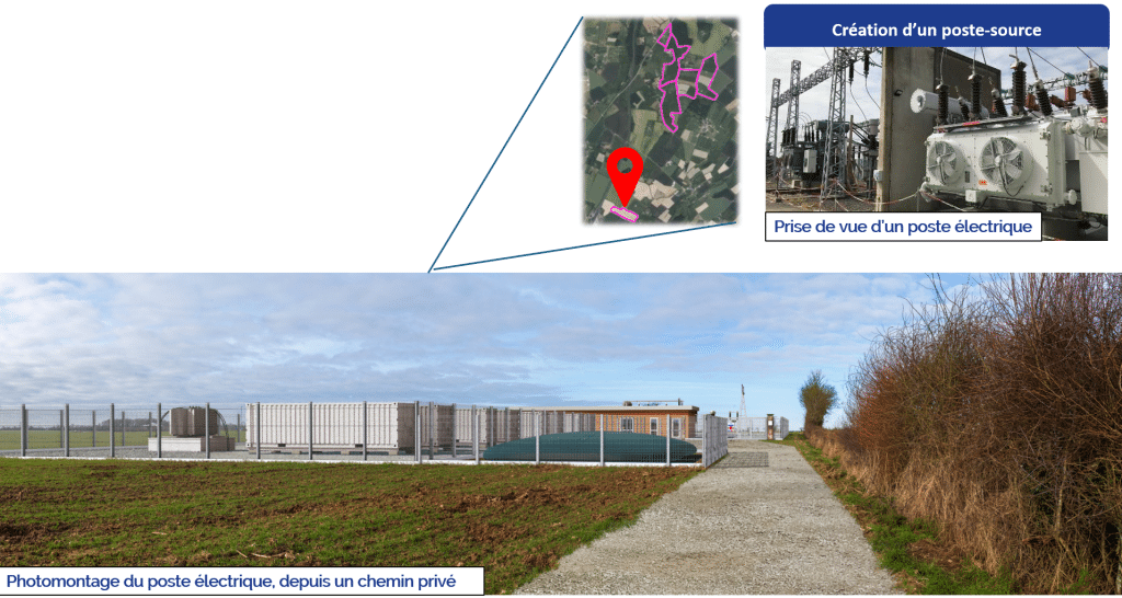 Ce projet et sa puissance installée importante nous amène également à construire un poste électrique privé, dans une parcelle au sud de Heugon, pour nous raccorder au réseau électrique national. Ce poste permet donc de limiter considérablement la distance de raccordement du projet, et aura la capacité d’accueillir la puissance de futurs projets d’énergies renouvelables dans le secteur