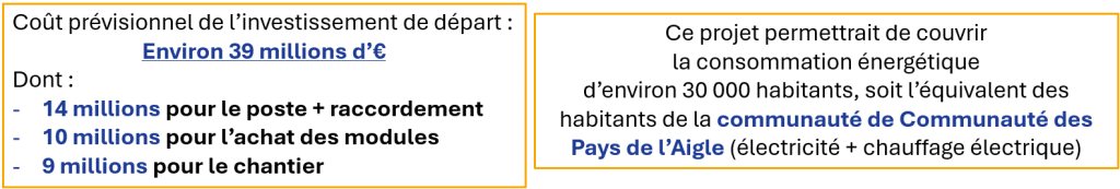 De plus, conformément aux législations françaises sur l’installations de site producteur d’énergies renouvelables, différentes taxes sont reversées annuellement à la commune de La Ferté-en-Ouche, à la Communauté de Communes des Pays de l’Aigle (TFB, IFER, CFE). Ce projet assurera une augmentation des ressources financières des collectivités locales, contribuera au développement économique de la région et n’entraînera pas de charges financières nouvelles pour la commune ou les autres collectivités territoriales.. Des coûts liés aux travaux de réalisation du site seront investis auprès d’entreprises régionales (génie civil, infrastructures électriques, ingénierie, exploitation et maintenance des panneaux…).
