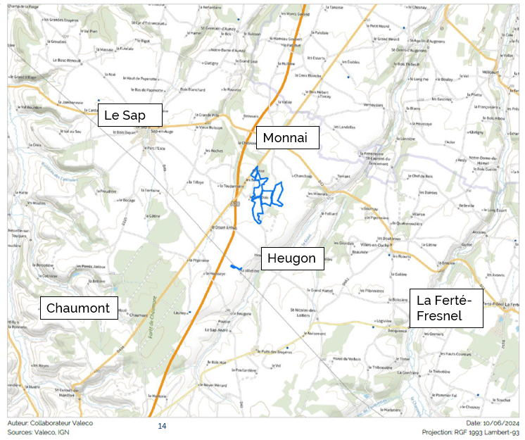 Les informations ci-dessous sont issues de ce comité de projet. La société VALECO développe actuellement sur la commune de Monnai (rattachée à La Ferté-en-Ouche) depuis 2022, en concertation avec les différents élus locaux. Le dépôt du permis de construire auprès de la DDT de l’Orne est prévu pour mars 2025.