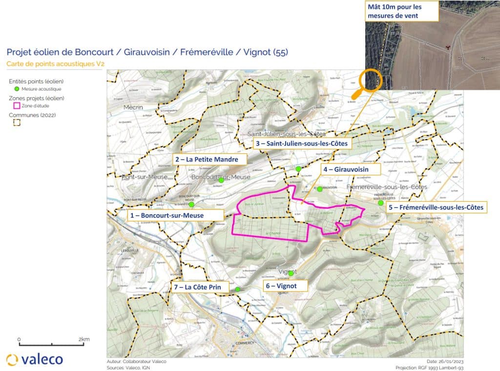 Afin de déterminer l’impact sonore potentiel du projet éolien de Forbeauvoisin sur les riverains et prévoir de le limiter, une campagne acoustique a été mise en place. Celle-ci a pour objectif de dresser l’état initial du paysage sonore avant la future implantation d’éoliennes.