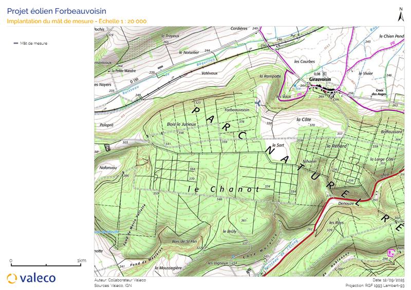 La visite préalable du 4 septembre ayant permis de confirmer la faisabilité technique de l’installation d’un mât de mesure, une déclaration préalable a été envoyée aux mairies de Girauvoisin et Boncourt-sur-Meuse, ainsi qu’aux services de l’Armée et de la DGAC.